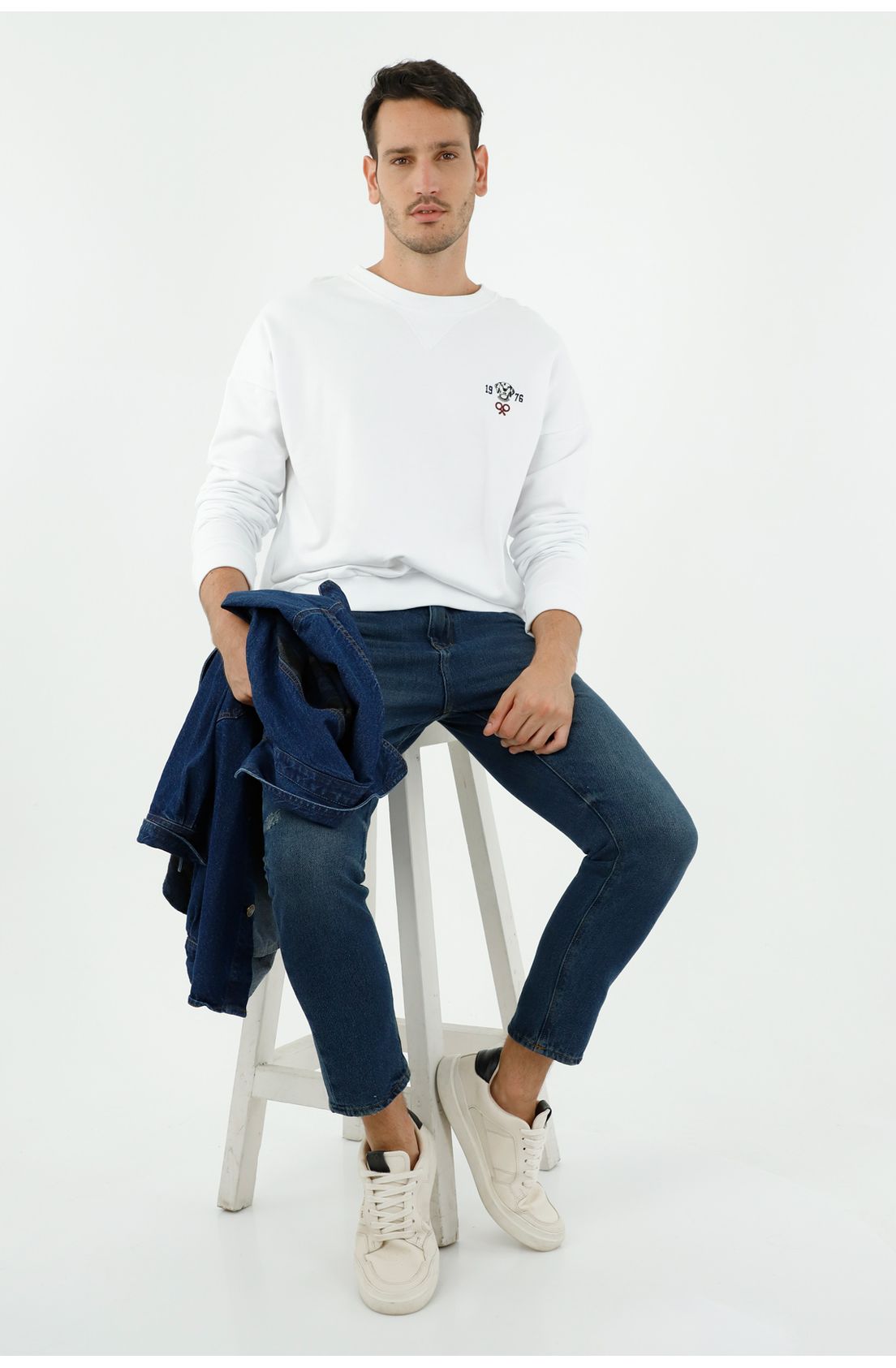Buzo unisex blanco con tejido